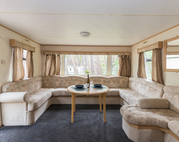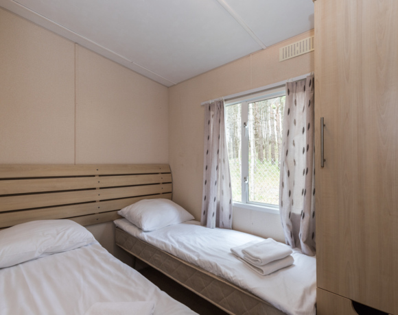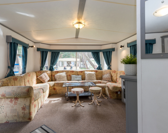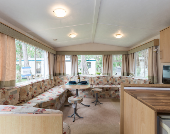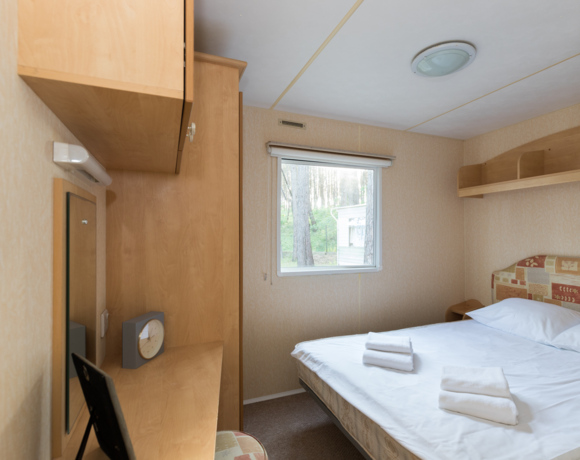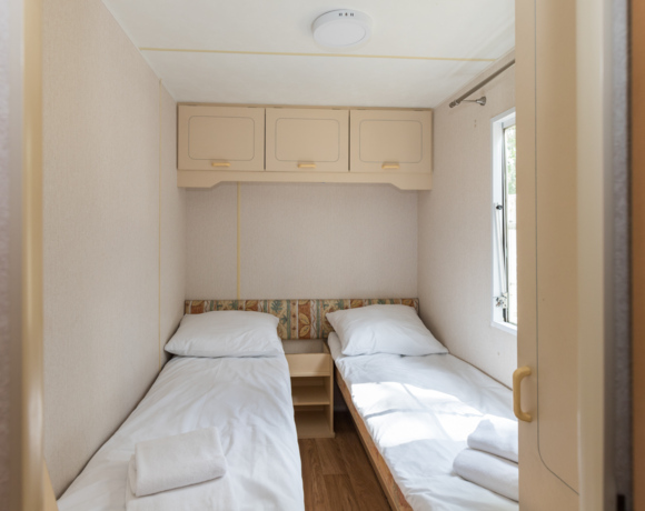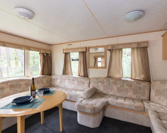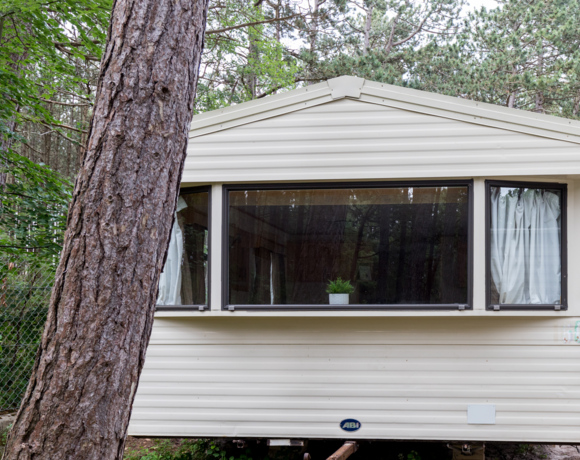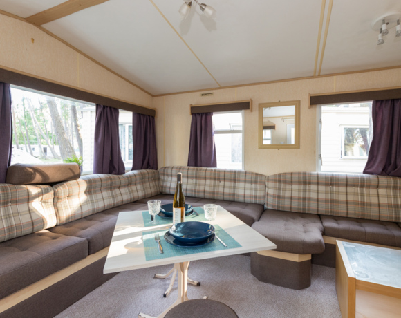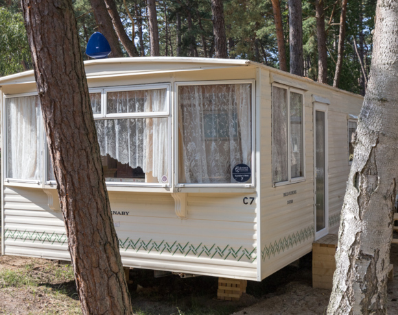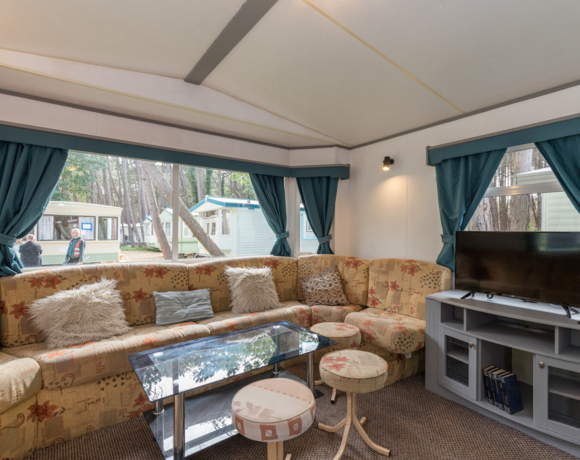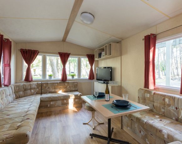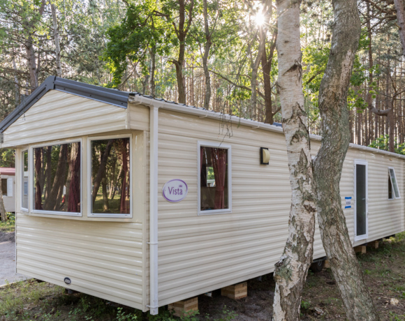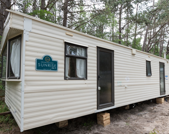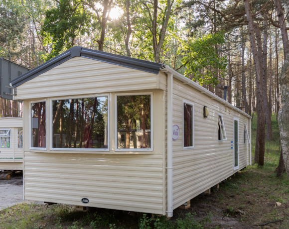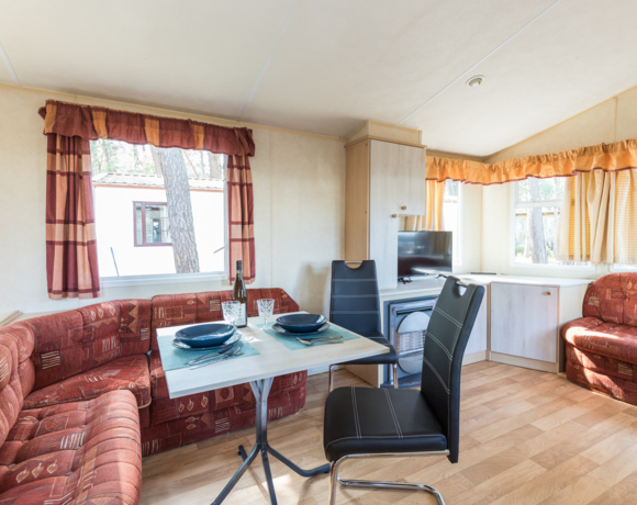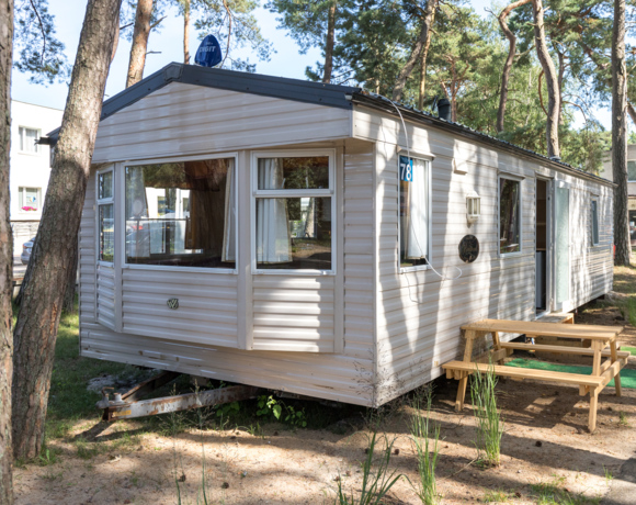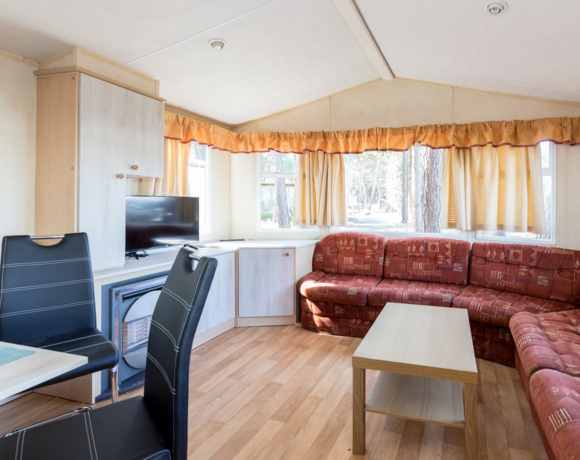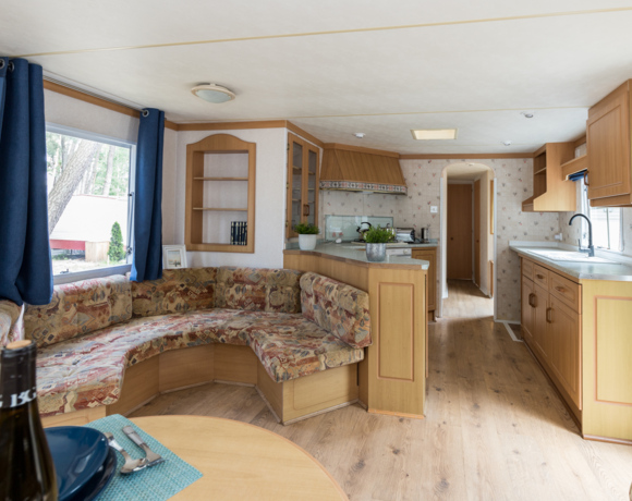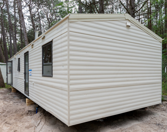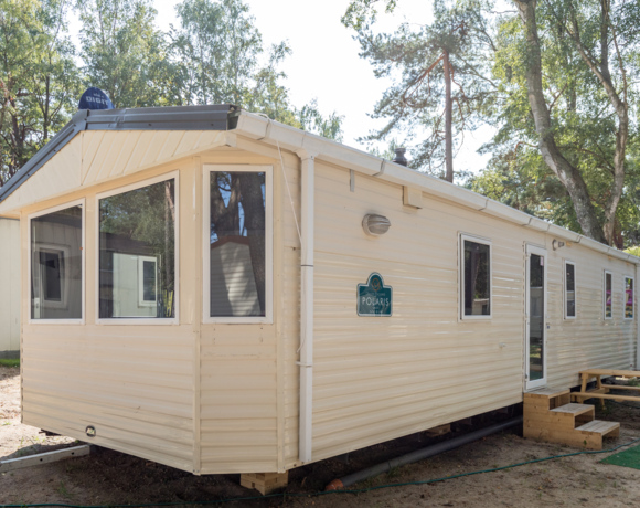 Oferujemy komfortowy domek mobilny o wymiarach 10,66x3,65 metrów z widokiem na piękny las, idealny na rodzinne wypady. Domek posiada 3 sypialnie, łazienka, w pełni wyposażoną kuchnię oraz przestronny salon.