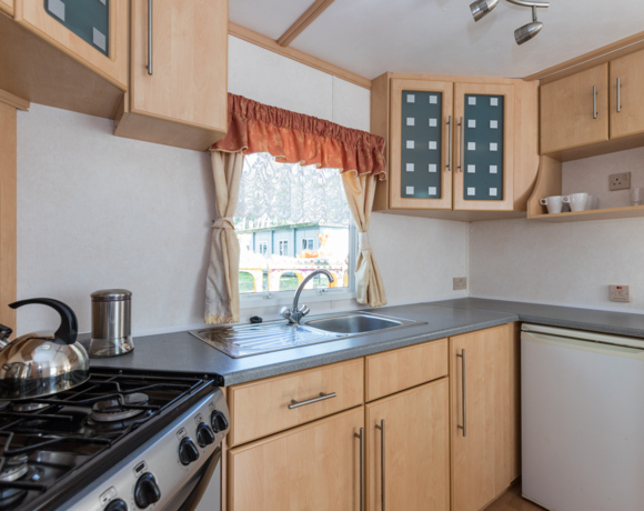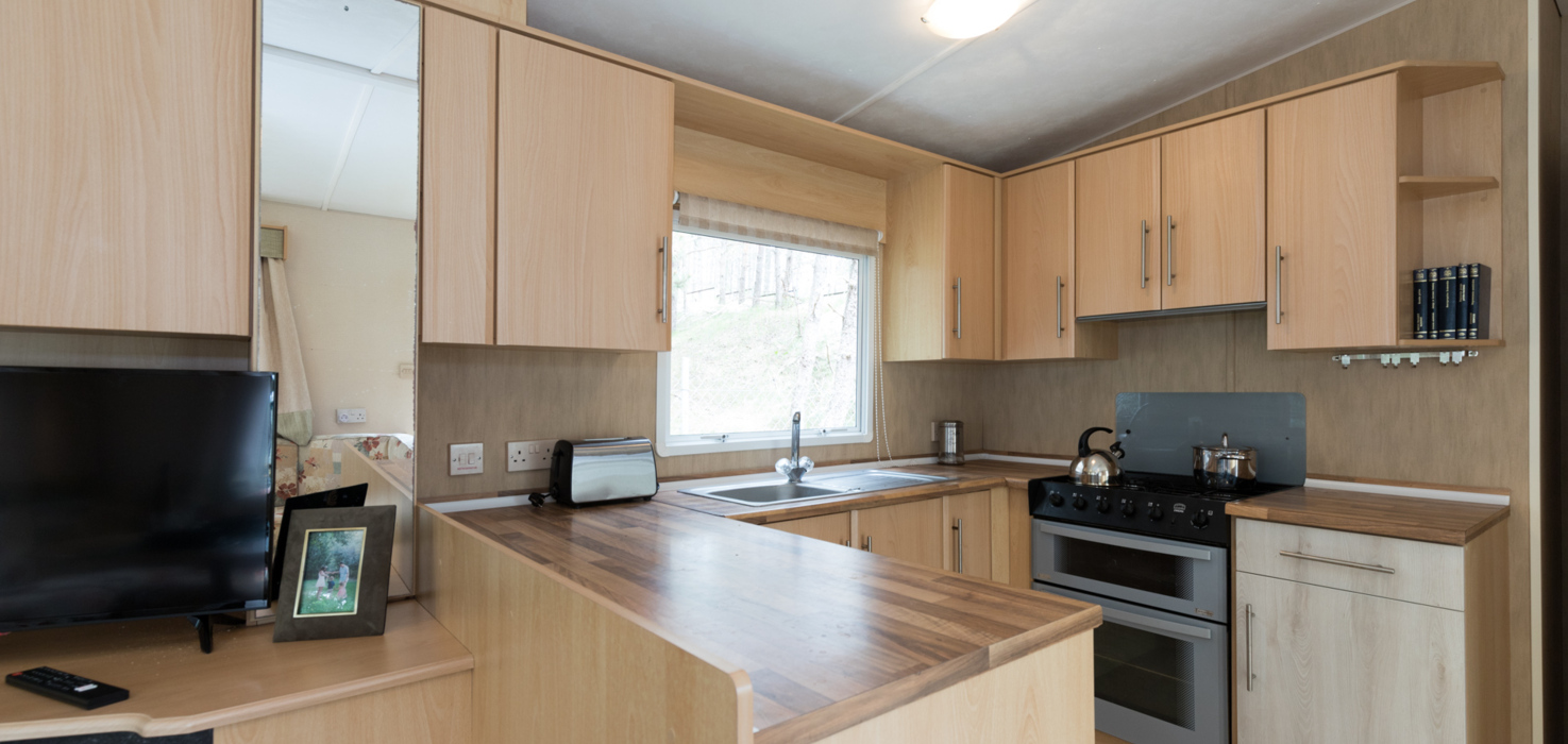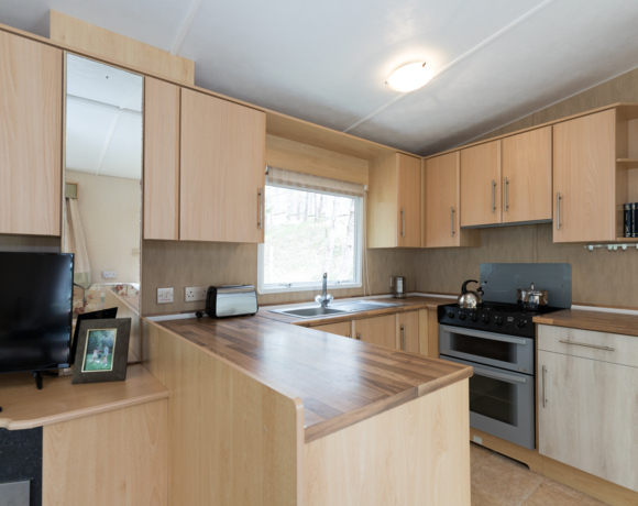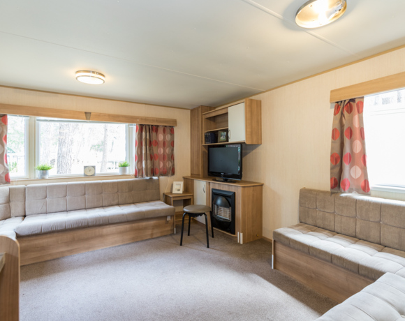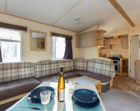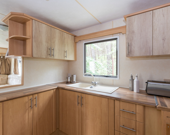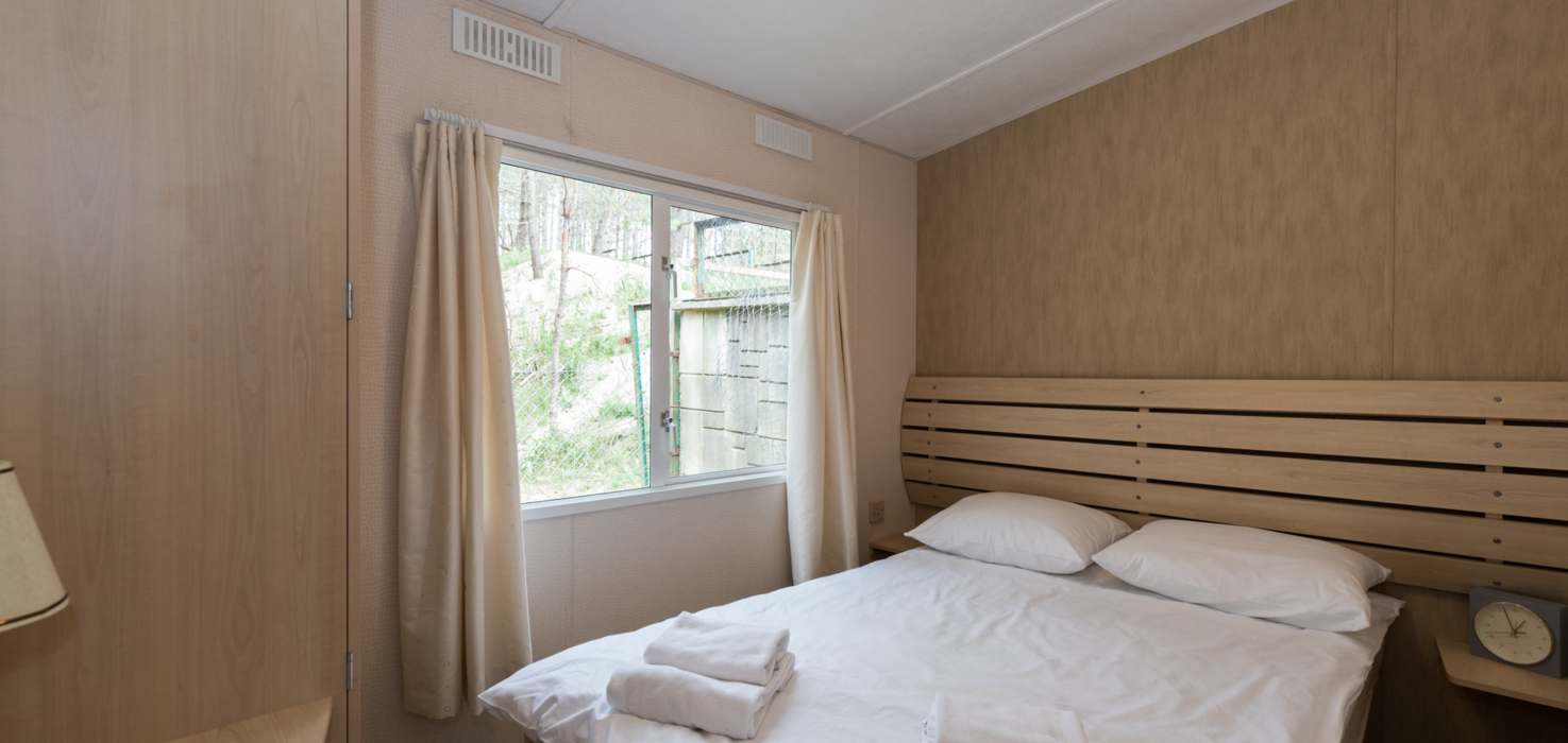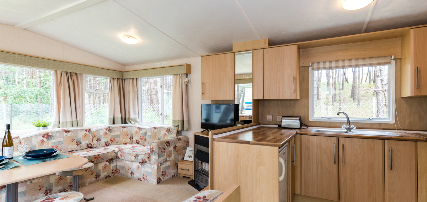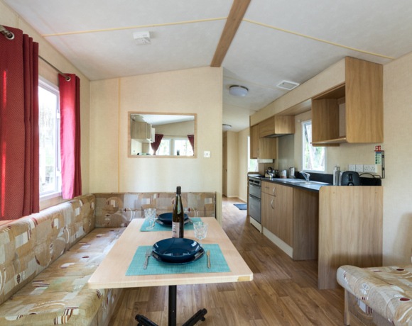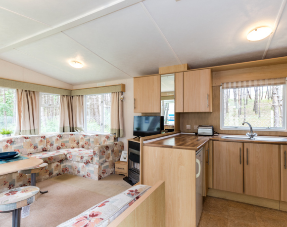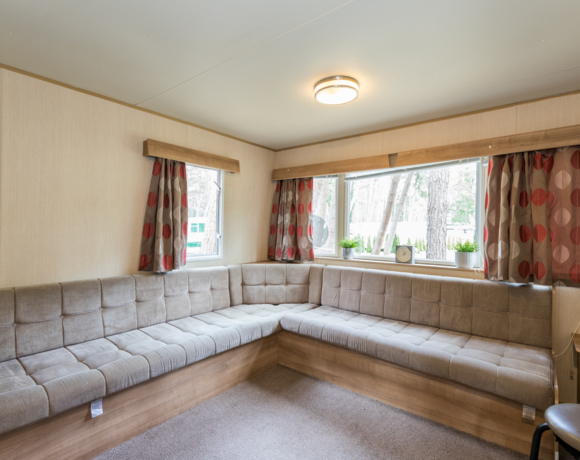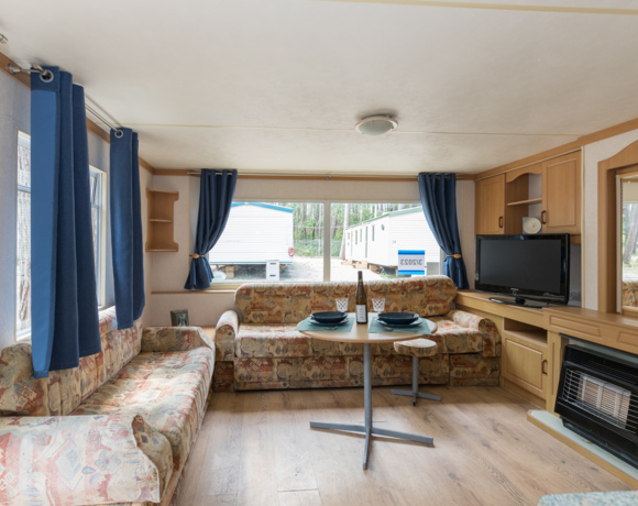Oferujemy komfortowy domek mobilny o wymiarach 10,66x3,65 metrów z widokiem na piękny las, idealny na rodzinne wypady. Domek posiada 3 sypialnie, łazienka, w pełni wyposażoną kuchnię oraz przestronny salon.