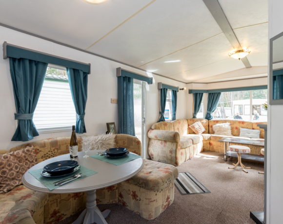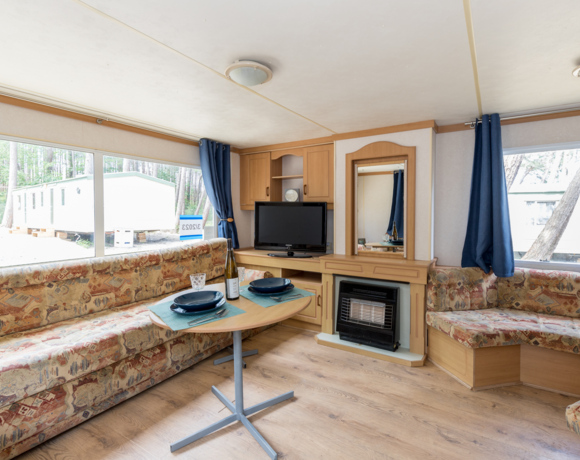 Oferujemy komfortowy, przestronny mobilny dom o wymiarach 9,75x3,65 metrów z 3 sypialniami i 1 łazienką. Idealne miejsce na rodzinne wakacje, zapewniające wygodne wnętrze oraz w pełni wyposażoną kuchnię. Odkryj naszą wyjątkową lokalizację.