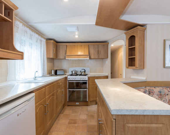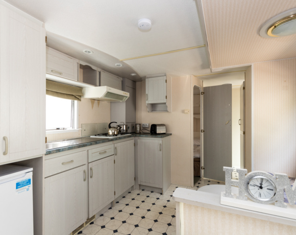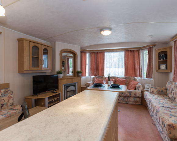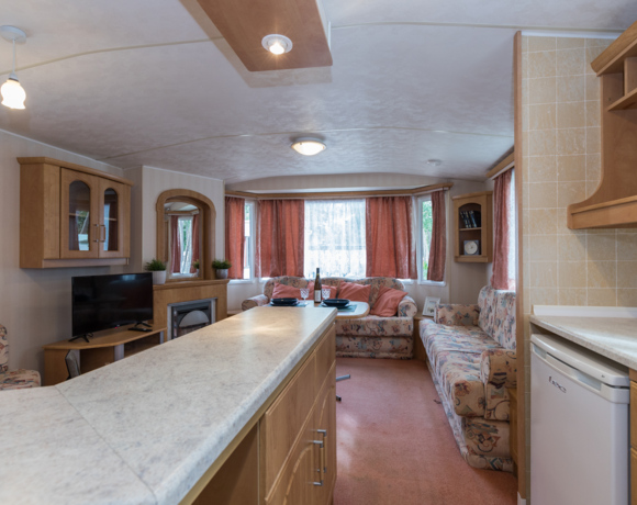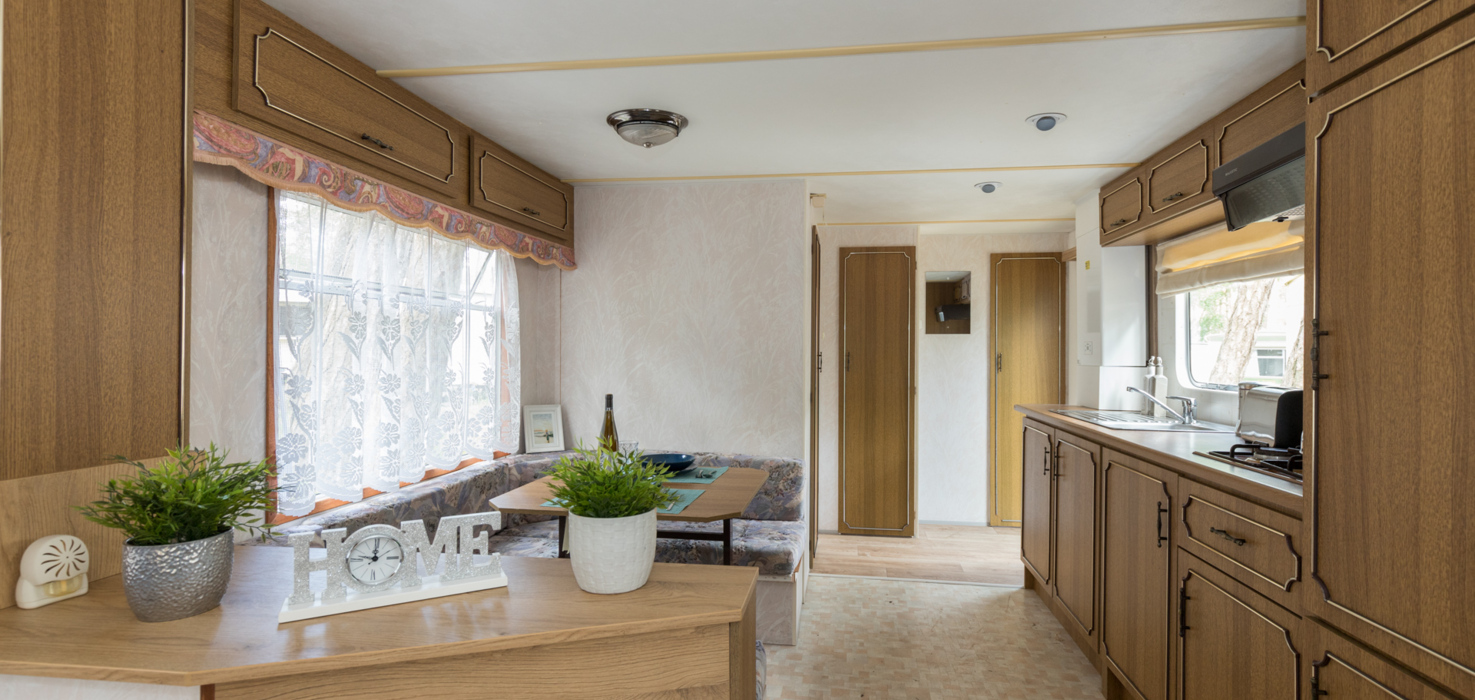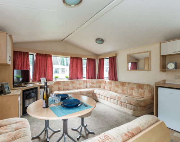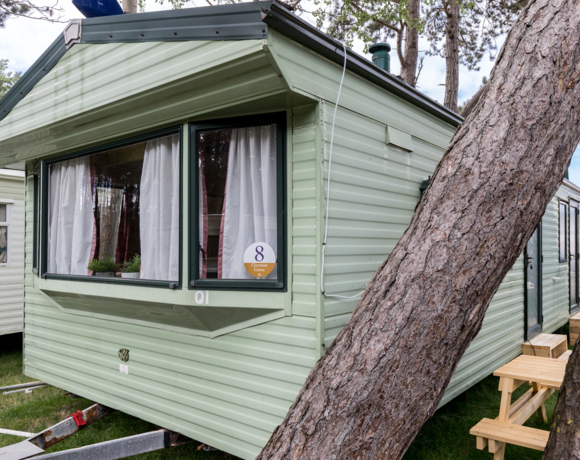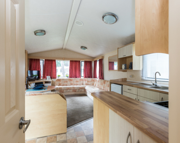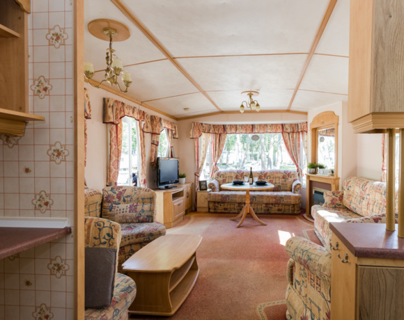 Nasz domek mobilny o rozmiarze 9,75x3,65 metrów z 2 sypialniami oferuje komfortowy pobyt w otoczeniu natury. Przestronna kuchnia i jasny salon z telewizorem oraz łazienka zapewniają pełne wyposażenie.