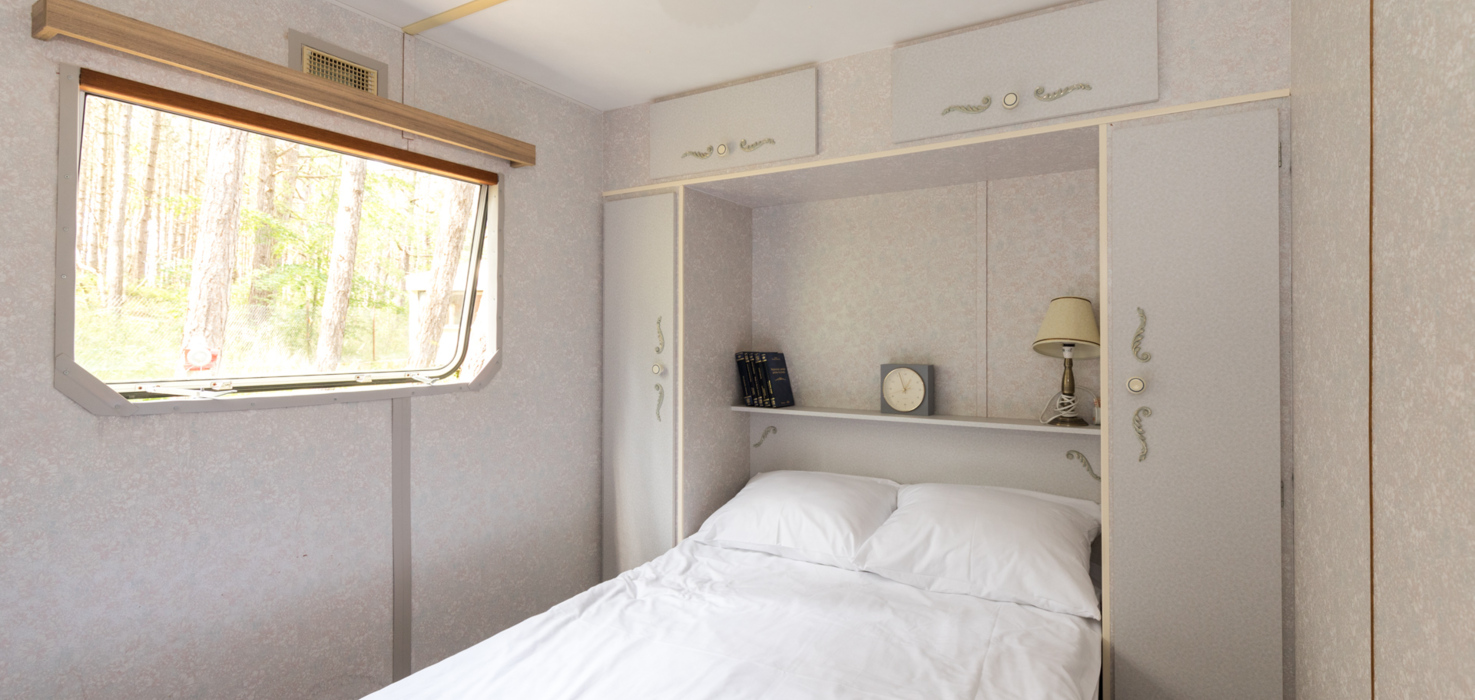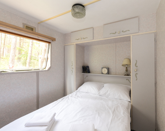 Komfortowy domek mobilny z dwiema sypialniami, idealny na rodzinne wakacje. Wyposażony we wszystkie niezbędne udogodnienia, zapewni spokojny i relaksujący pobyt w otoczeniu natury.