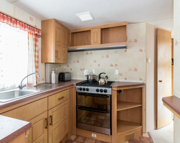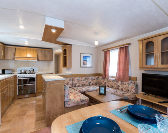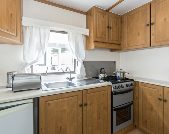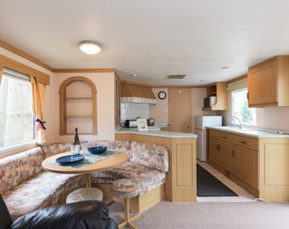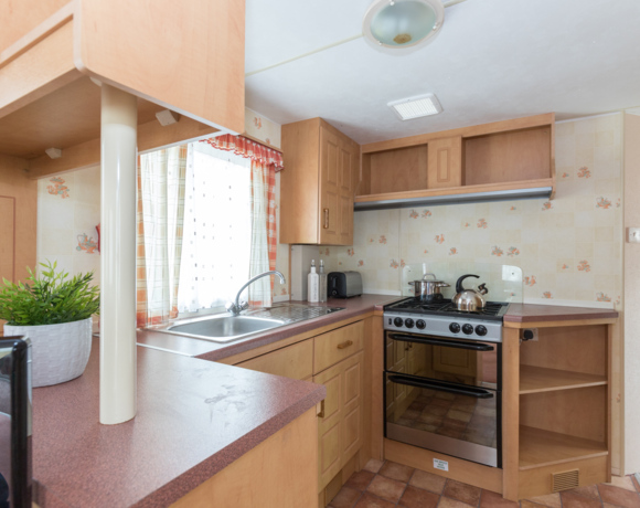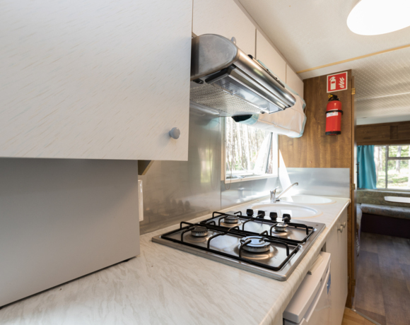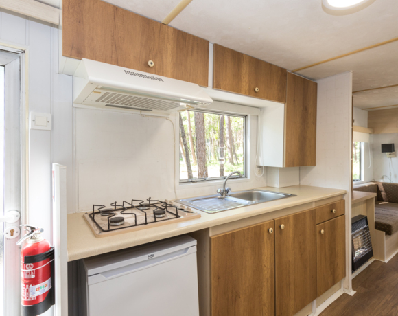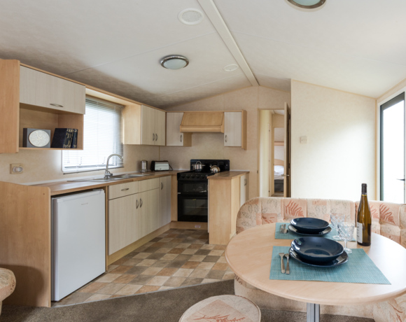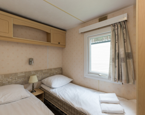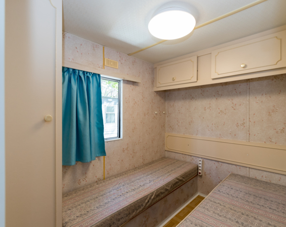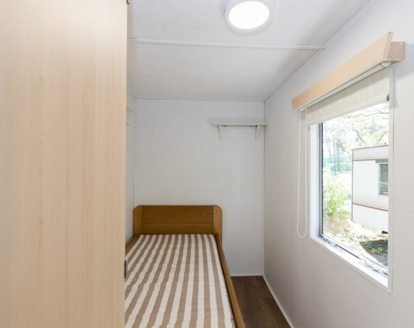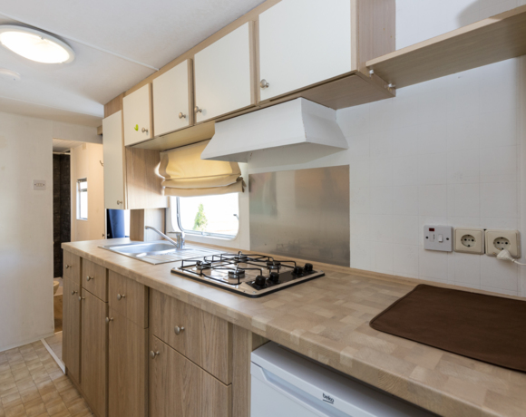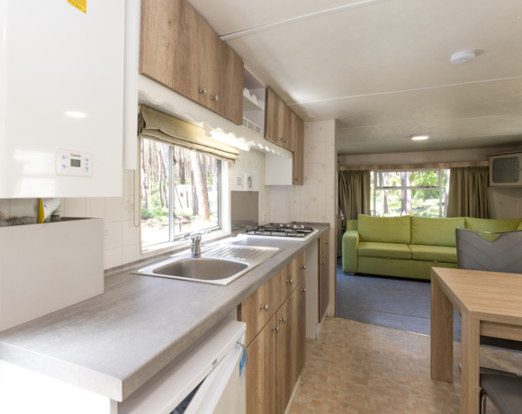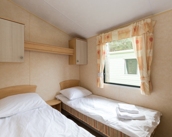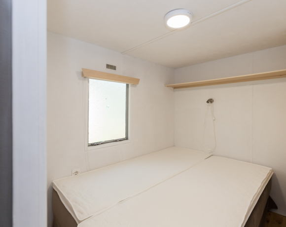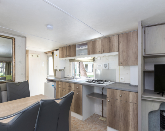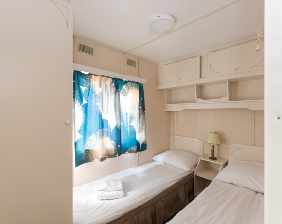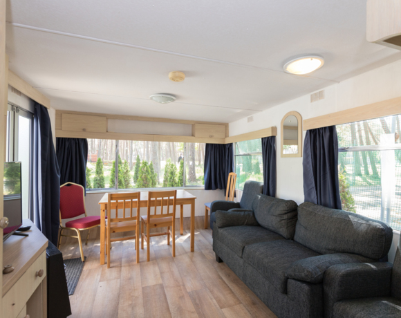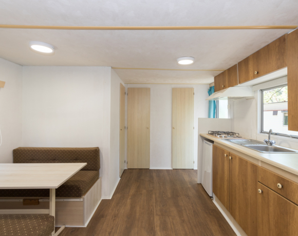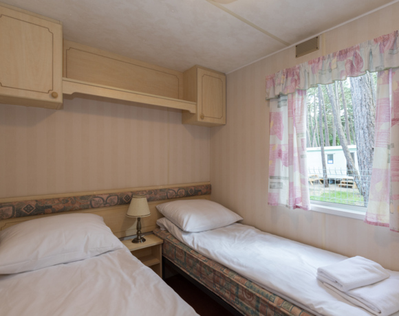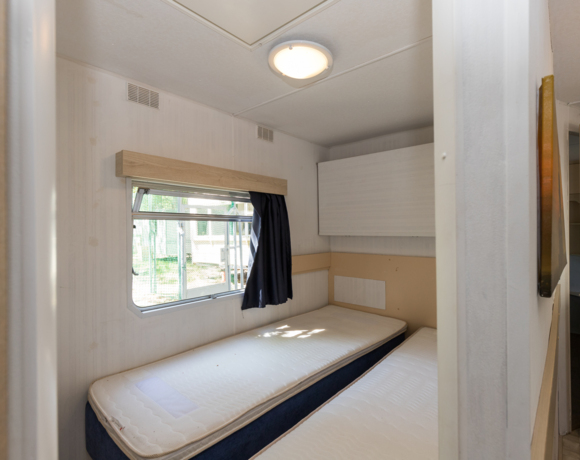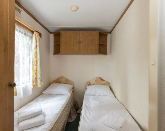 Te domki posiadają dwie sypialnie, z których jedna ma łóżko małżeńskie, a druga dwa wygodne łóżka dla dzieci. Kuchnia z aneksem i salon są idealnie wkomponowane, aby móc cieszyć się komfortem i przestrzenią.