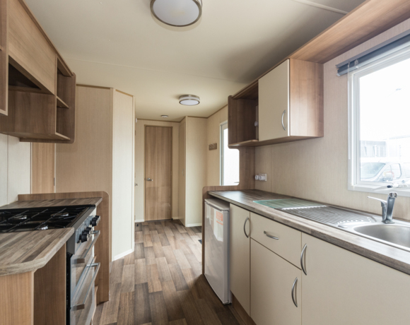 Oferujemy nowoczesny mobilny domek z dwiema sypialniami i jedną łazienką o wymiarach 10,97x3,65 metrów. Jasne wnętrza, kompletnie wyposażona kuchnia i przestronny salon zapewniają komfortowy pobyt.
