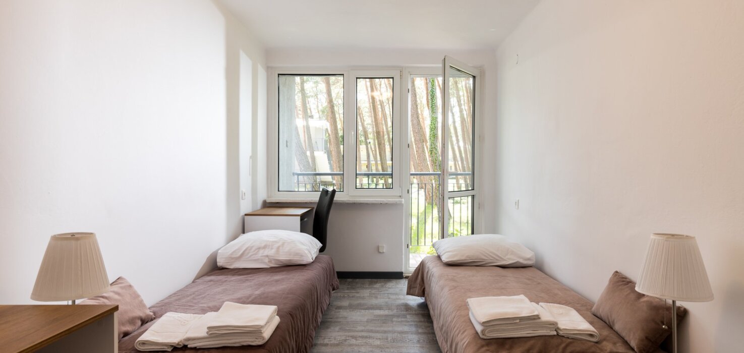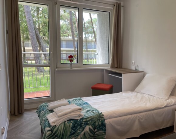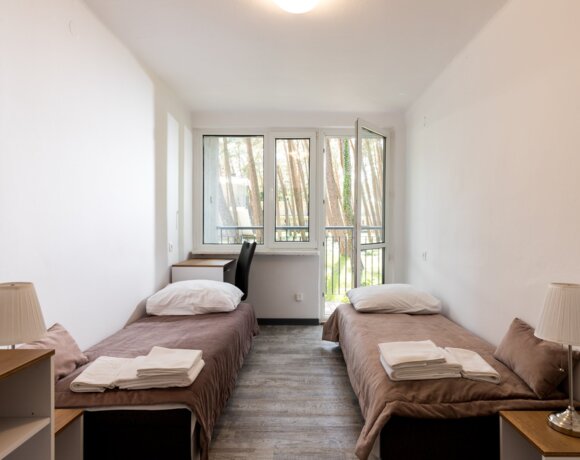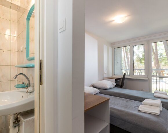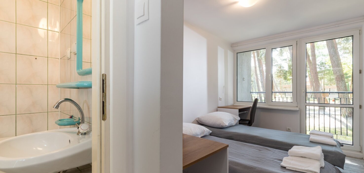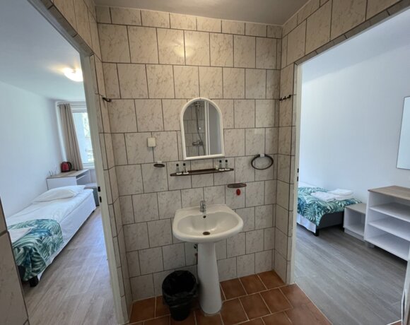 Usytowanie 2 pokoi ze wspólną łazienką to doskonałe rozwiązanie dla rodziny z dziećmi. Pawilon ten dysponuje 12-toma takimi pokojami o owierzchni łącznej 26 m2. oraz dwoma apartamentami 6 osobowymi o powierzchni 32 m2.